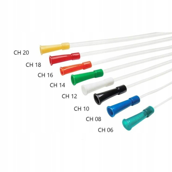 Kolorystyka uzależniona jest od rozmiaru cewnika - każdy rozmiar oznaczony jest innym kolorem.