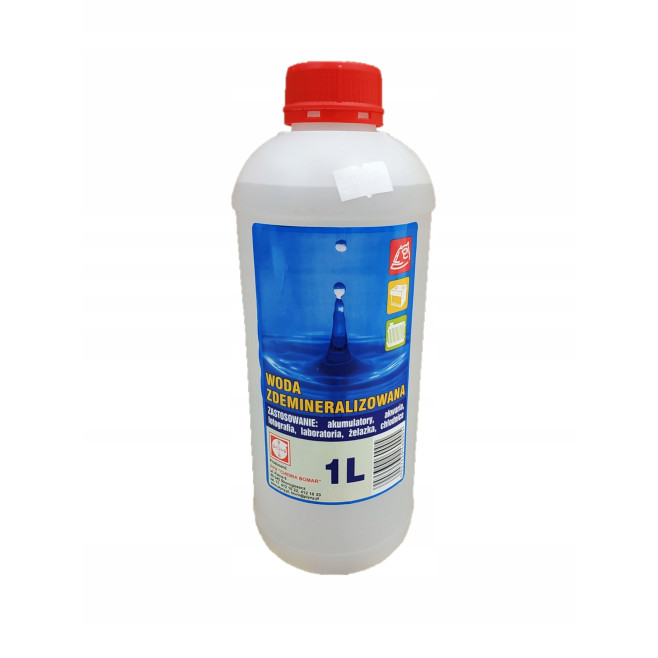 Woda demineralizowana (idealnie czysta), czyli woda pozbawiona minerałów. Nie pozostawia kamienia. Przedłuża żywotność i trwałość urządzeń, brak osadzania się kamienia.