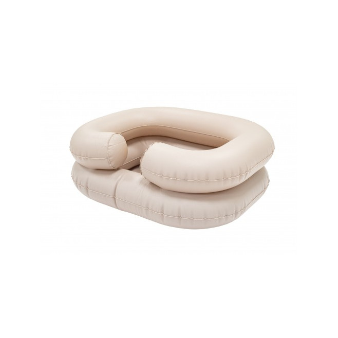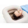 Zestaw obejmuje przenośny nadmuchiwany basen do mycia głowy z otworem odprowadzającym wodę wykonany z PCV.