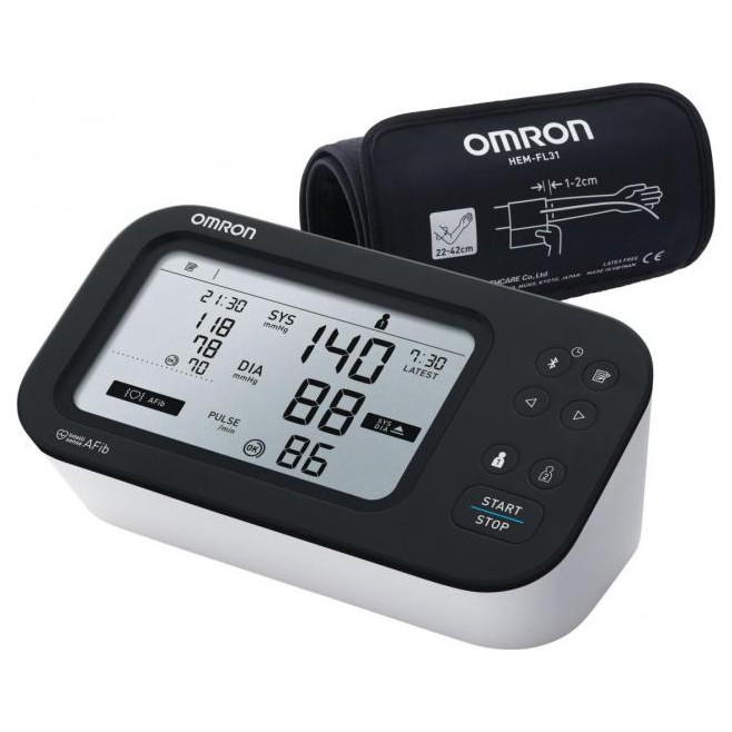 Omron M7 Intelli IT AFib to inteligentny ciśnieniomierz naramienny klasy premium, zaprojektowany dla osób, które poważnie dbają o zdrowie serca. Urządzenie łączy w sobie dokładność pomiaru, zaawansowaną technologię wykrywania migotania przedsionków (AFib) oraz nowoczesne funkcje łączności Bluetooth z aplikacją OMRON Connect. Dzięki temu możesz w pełni kontrolować swoje wyniki i śledzić historię pomiarów w czasie rzeczywistym – wygodnie, bezpiecznie i w domowym zaciszu.
