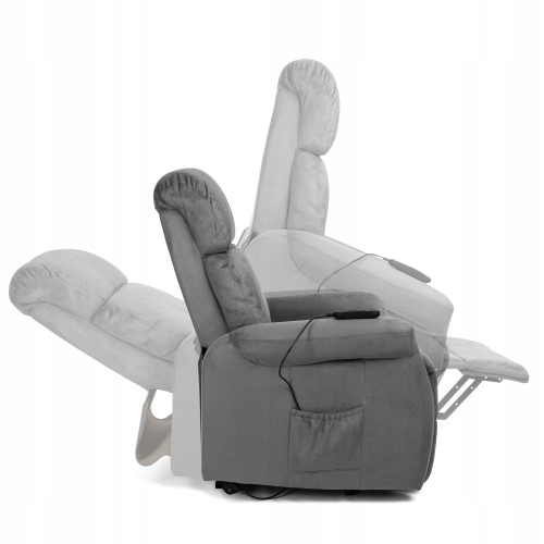 regulowany, zapewniający wygodny wypoczynek osobom chorym, w zaawansowanym wieku oraz stale przebywających we własnym mieszkaniu. Fotel wyposażony jest w podwójny, niezależny napęd, który zapewnia maksymalny komfort użytkownika, dzięki wielu możliwościom wyboru ustawień. Przeznaczony do użytku wewnątrz pomieszczeń.