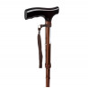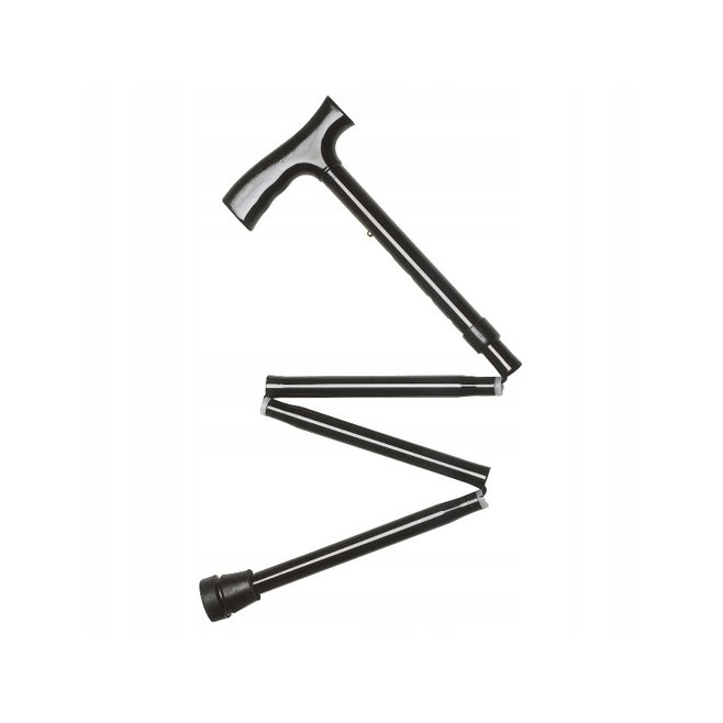 Elegancka laska składana wykonana z wysokiej jakości lakierowanego drewna oraz stopu aluminium, regulowana wysokość od 78 cm do 88 cm. Laska składana z czterech części mocowanych ze sobą na elastycznej gumie, dzięki czemu nie ma możliwości zgubienia żadnego ze składów.
