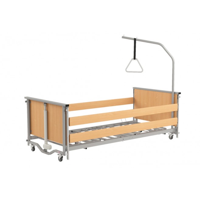 To rozwiązanie do domu i do placówek, kiedy potrzebujesz łóżka, które jest praktyczne, stabilne i łatwe w obsłudze. W standardzie łóżko ma wysięgnik z uchwytem oraz barierki boczne.