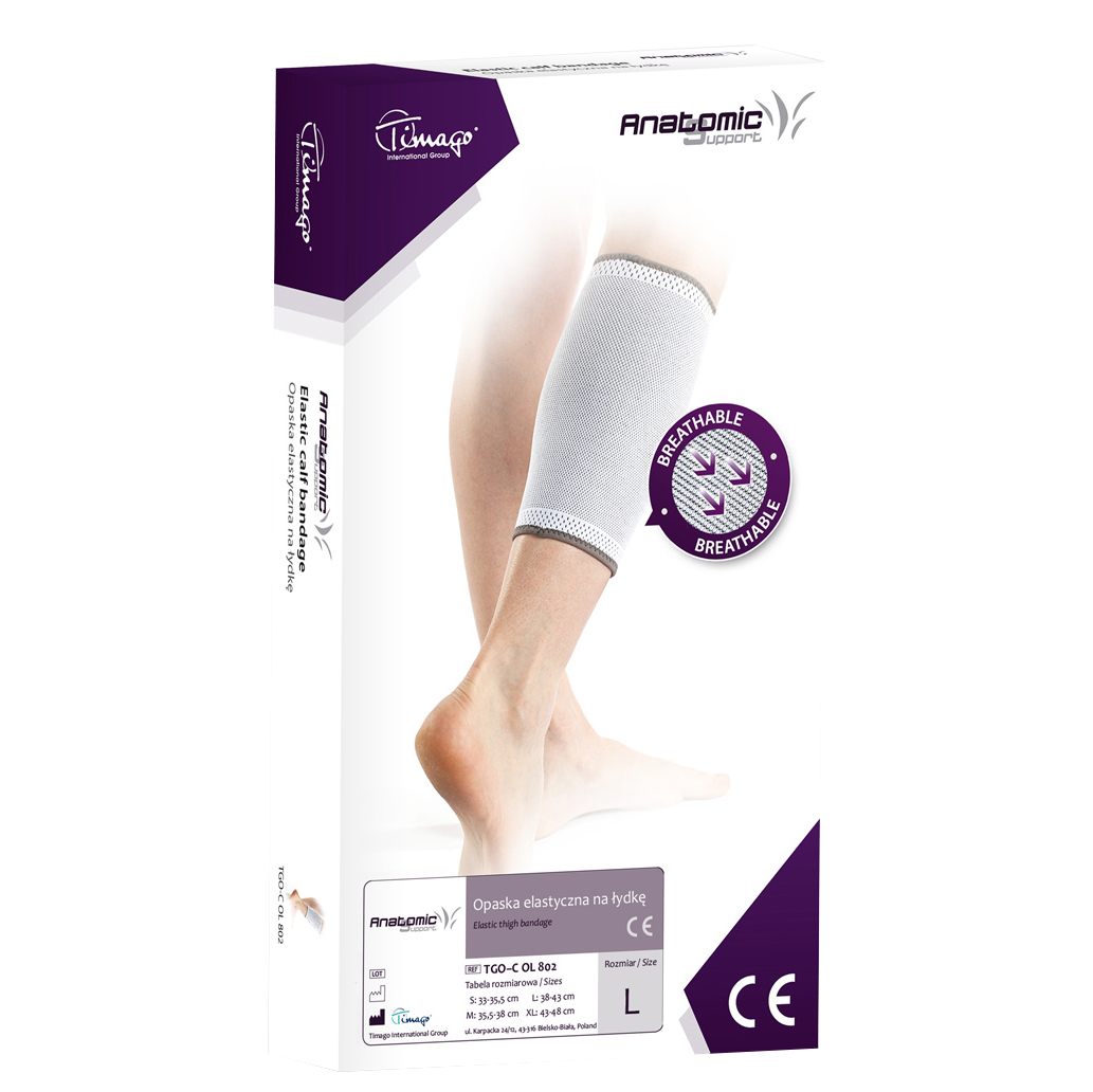 Opaska elastyczna na łydkę wykonana jest w systemie bezszwowym z ortopedycznej tkaniny kompresyjnej.
