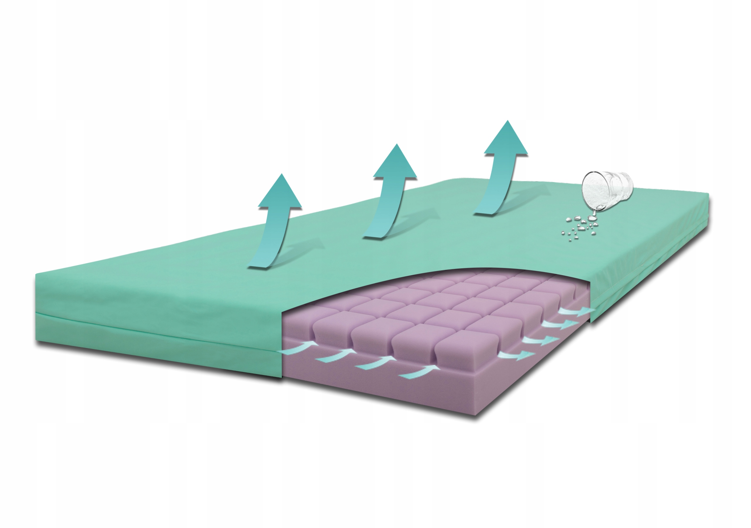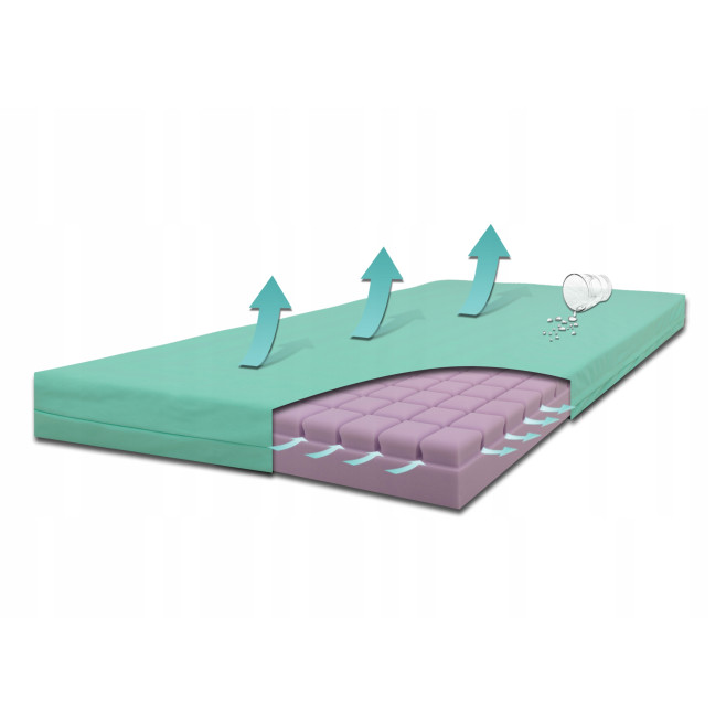 ✔️ Duża powierzchnia bloczków – pozwala na zwiększenie kontaktu ciała pacjenta z materacem, co obniża nacisk w miejscach narażonych na powstawanie odleżyn.