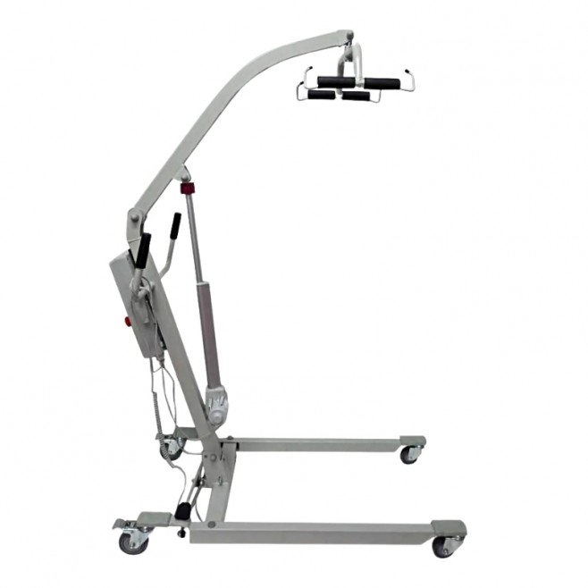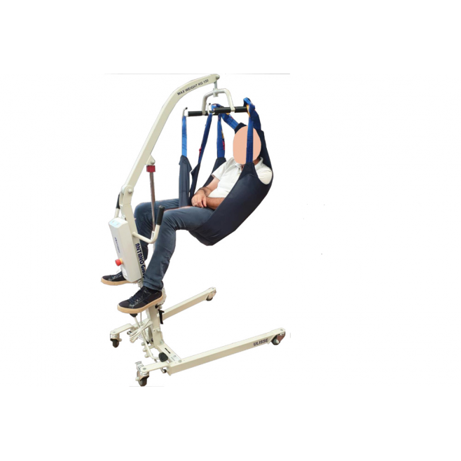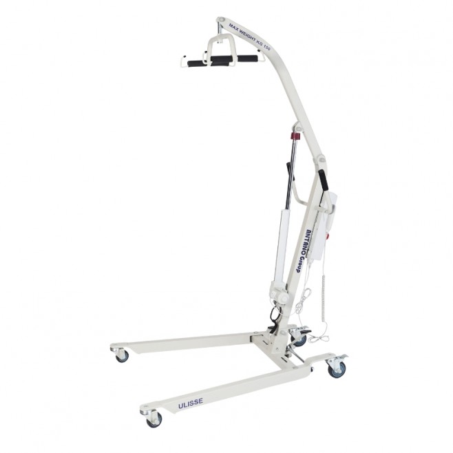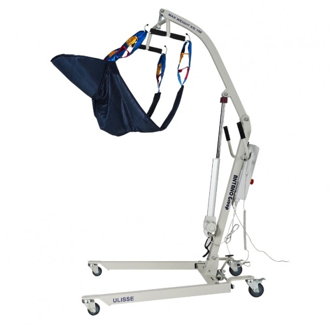 Podnośnik pacjenta ULISSE EL 150 CI pomaga w przenoszeniu osoby z ograniczoną mobilnością, np. z łóżka na wózek, fotel albo krzesło kąpielowe. To duże wsparcie w codziennej opiece, gdy samodzielne przesiadanie jest trudne lub niemożliwe.