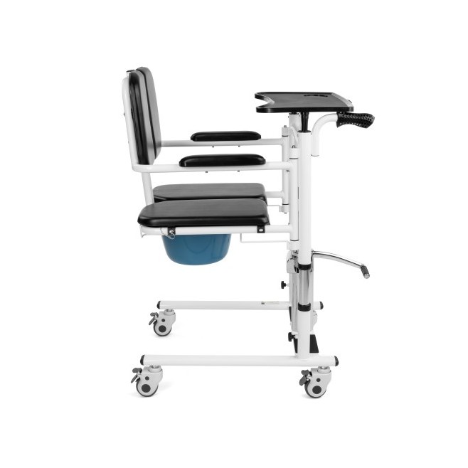 To rozwiązanie 3 w 1: działa jak podnośnik do przenoszenia, krzesło do przemieszczania oraz krzesło toaletowe. Dzięki temu codzienna opieka może być prostsza, a część czynności higienicznych da się wykonać bez dodatkowych „przesiadek”.