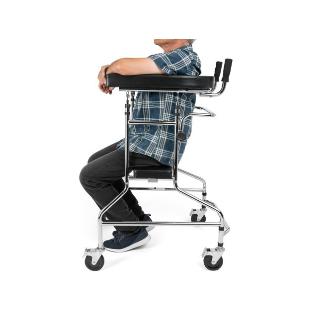 ANNA - podpórka z podłokietnikami typu ambona ułatwiająca chodzenie - jest sprzętem pomocniczym przeznaczonym dla osób o obniżonej sprawności ruchowej, które potrzebują stabilnego podparcia i asekuracji podczas pionizacji oraz chodzenia.