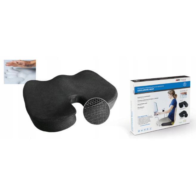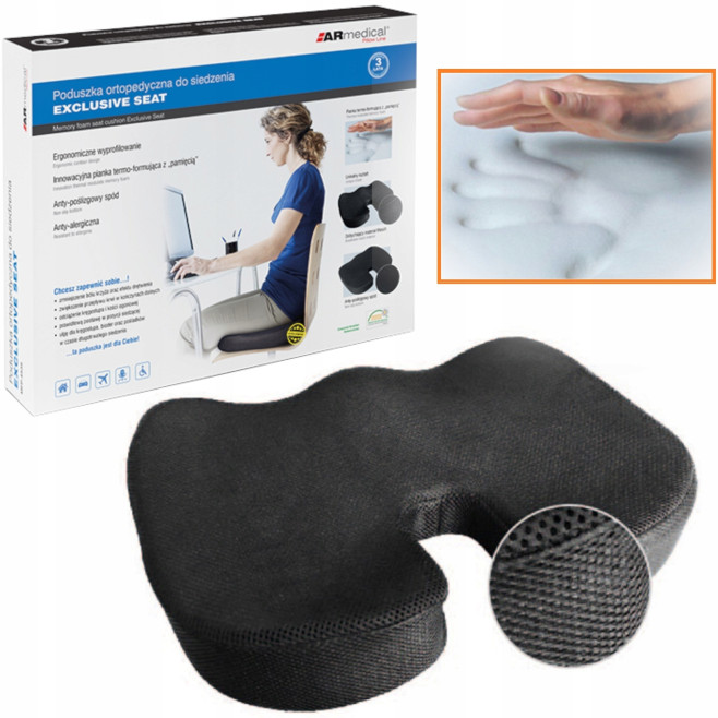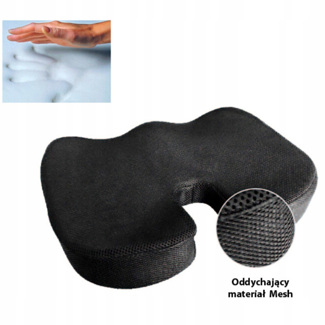 Precyzyjne wyprofilowanie poduszki sprawia, że idealnie dostosowuje się do kształtu ciała dając uczucie pełnego komfortu podczas długotrwałego siedzenia. Dzięki zastosowaniu pianki z pamięcią równomiernie rozkłada ucisk ciała.