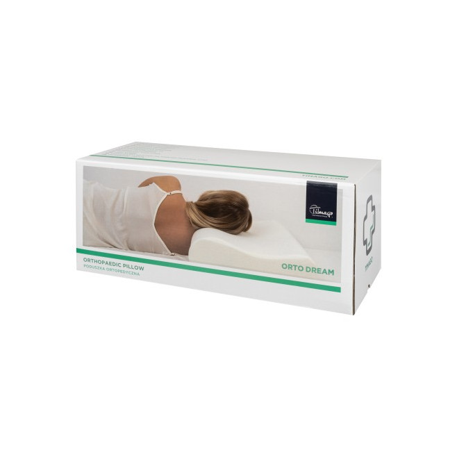 Poduszka ORTO DREAM przeznaczona dla osób potrzebujących stabilnego podparcia głowy i odcinka szyjnego kręgosłupa w trakcie snu, przy jednoczesnej redukcji nacisku na ciało.