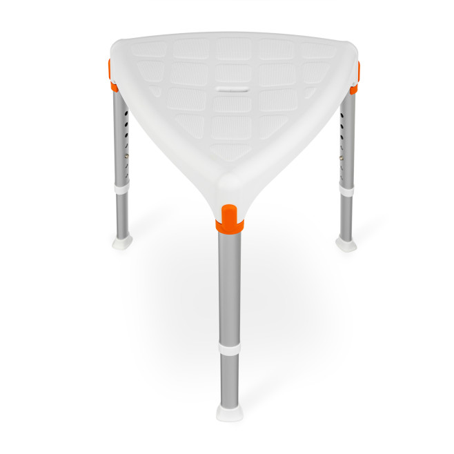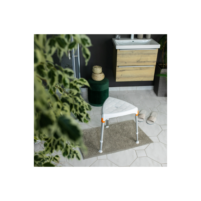 Taboret prysznicowy trójkątny jest sprzętem pomocniczym ułatwiającym użytkownikowi wykonywanie czynności higienicznych.