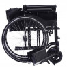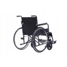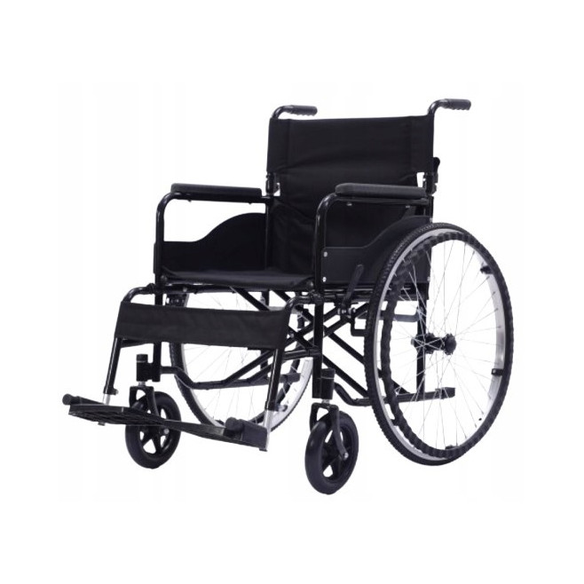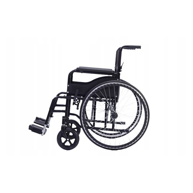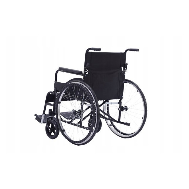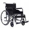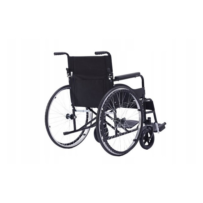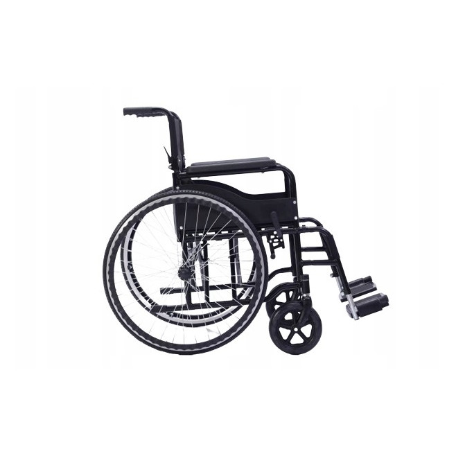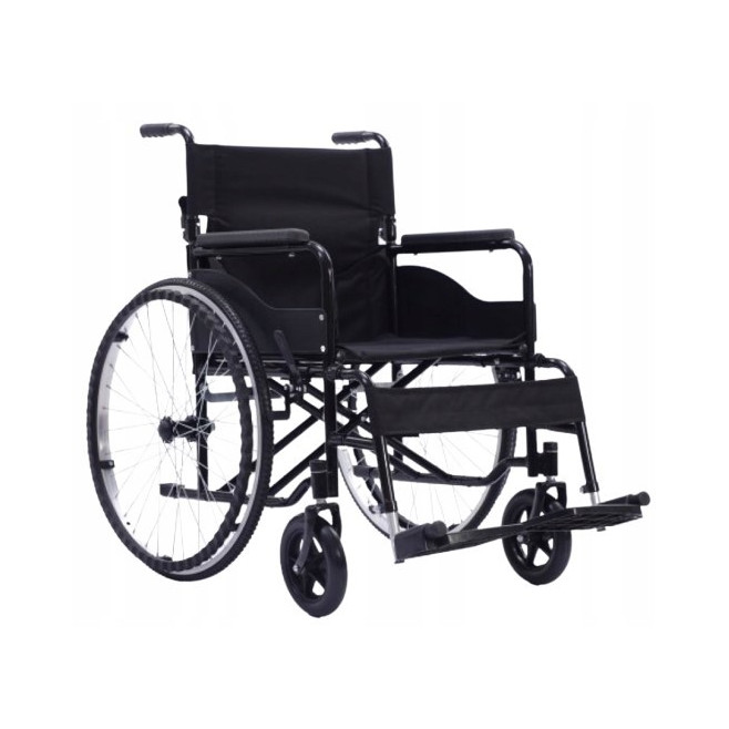 Nasz wózek inwalidzki wyposażony jest w wygodne siedzisko o szerokości 47 cm, składane oparcie, podłokietniki, podnóżki, które zapewniają stabilne podparcie i wygodę oraz bezobsługowe, bezdętkowe koła przednie i tylne.